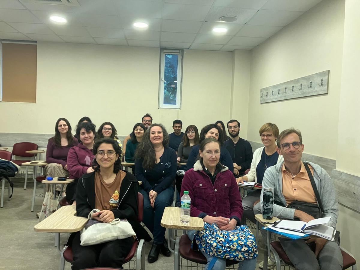 As part of our conference interpreting programme, which is an EU Centre of Excellence, we had an intensive two weeks of training with the participation of the staff interpreters of the European Parliament. In addition to the numerous classes, our students and instructors also took part in a mock conference on the "Belgian Presidency of the EU" organised by the European Commission where we integrated Turkish to a simulation of the multilingual interpreting environment in the EU. The Turkish booth gave a "retour" and the staff interpreters of the EP interpreted from their input into German. They then gave extensive feedback to our students on their retour. Next week, we will continue with a conference simulation organised by the department.