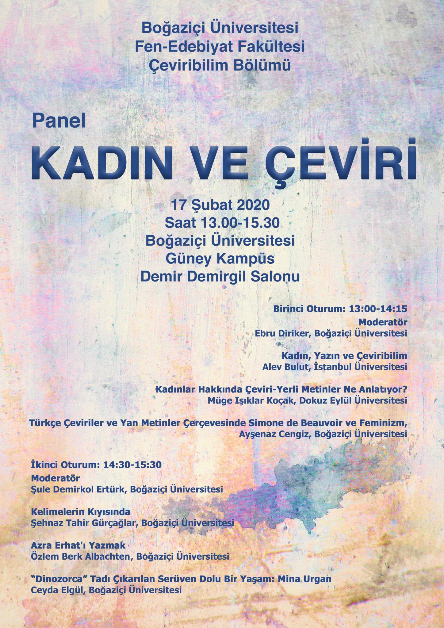 Bölümümüzün düzenlemiş olduğu ve 17 Şubat 2020 Pazartesi günü gerçekleştirilecek olan "Kadın ve Çeviri" başlıklı panele tüm ilgilenenler davetlidir.