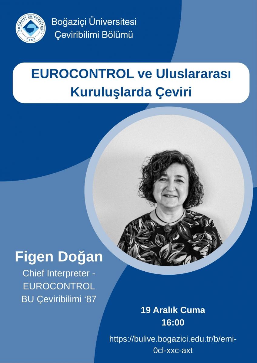 The Department of Translation and Interpreting Studies at Boğaziçi University is pleased to host Figen Doğan, Chief Interpreter at EUROCONTROL and a 1987 graduate of our department! Friday, December 19 We warmly invite all students and anyone interested in translation in international organizations to join us!